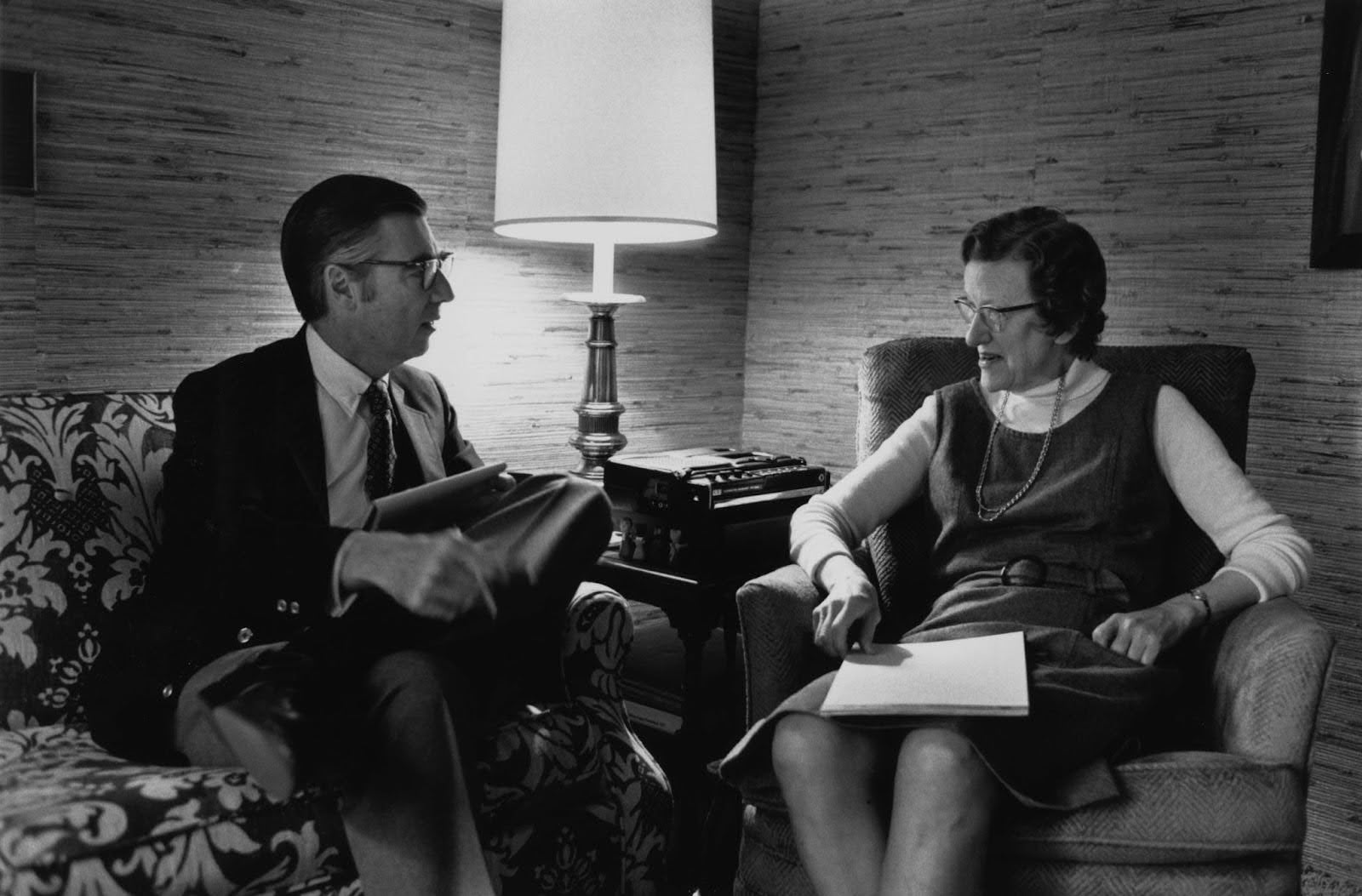 Rogers met Dr. McFarland when he attended graduate classes in child development at the University of Pittsburgh in the early 1960s. She served as a professor in the Department of Psychiatry at the Pitt School of Medicine, and as the Director of the Arsenal Family and Children’s Center in Pittsburgh, which she co-founded with notable pediatrician Benjamin Spock and psychoanalyst Erik Erikson. It was McFarland who encouraged Rogers to move from behind the camera to in front of the camera. When he was content working as a behind the scenes producer, she told him “Fred, the children need to see you. They need you to help them distinguish between reality and fantasy.” After he followed her advice, she would continue to be a trusted advisor and integral part of Mister Rogers’ Neighborhood.